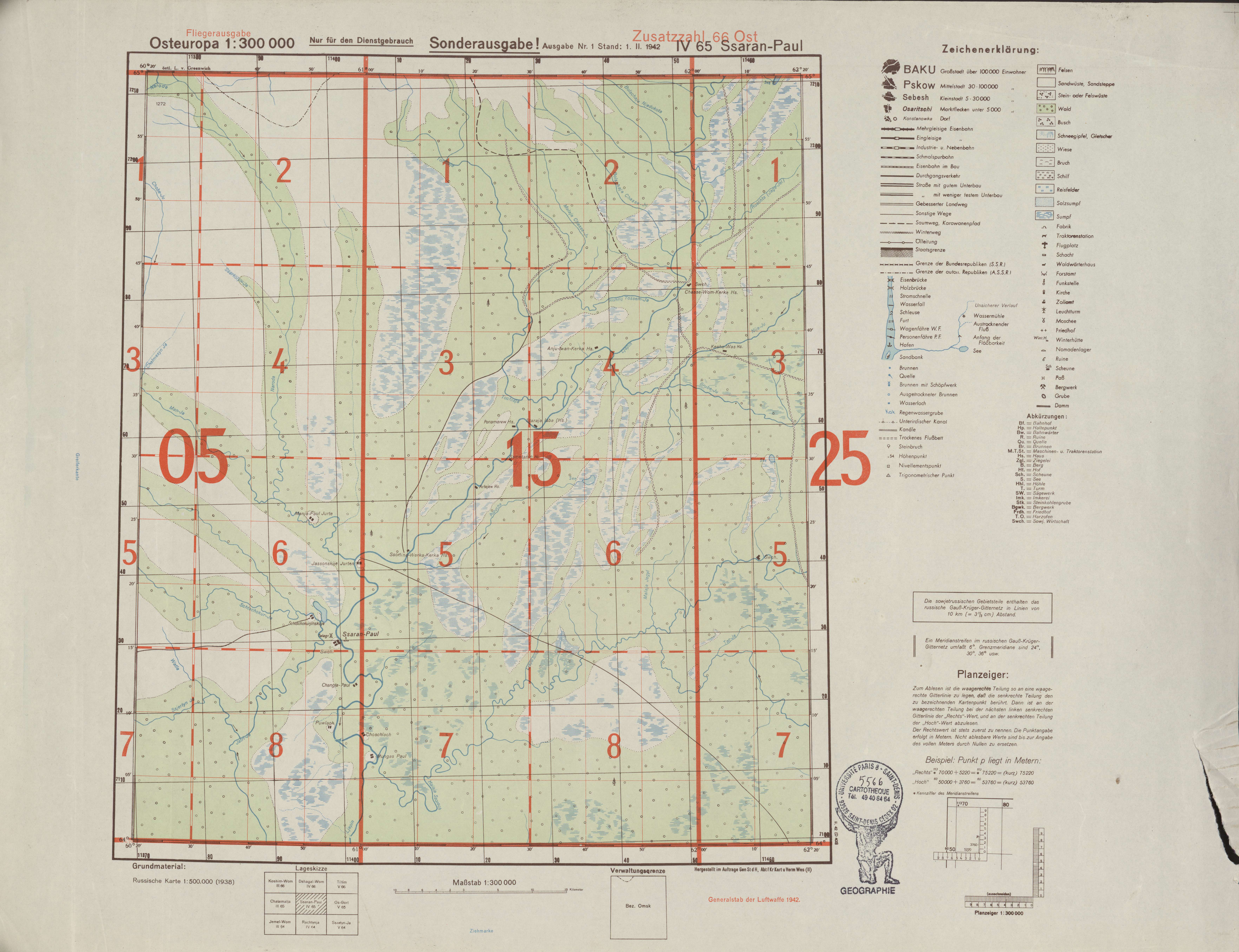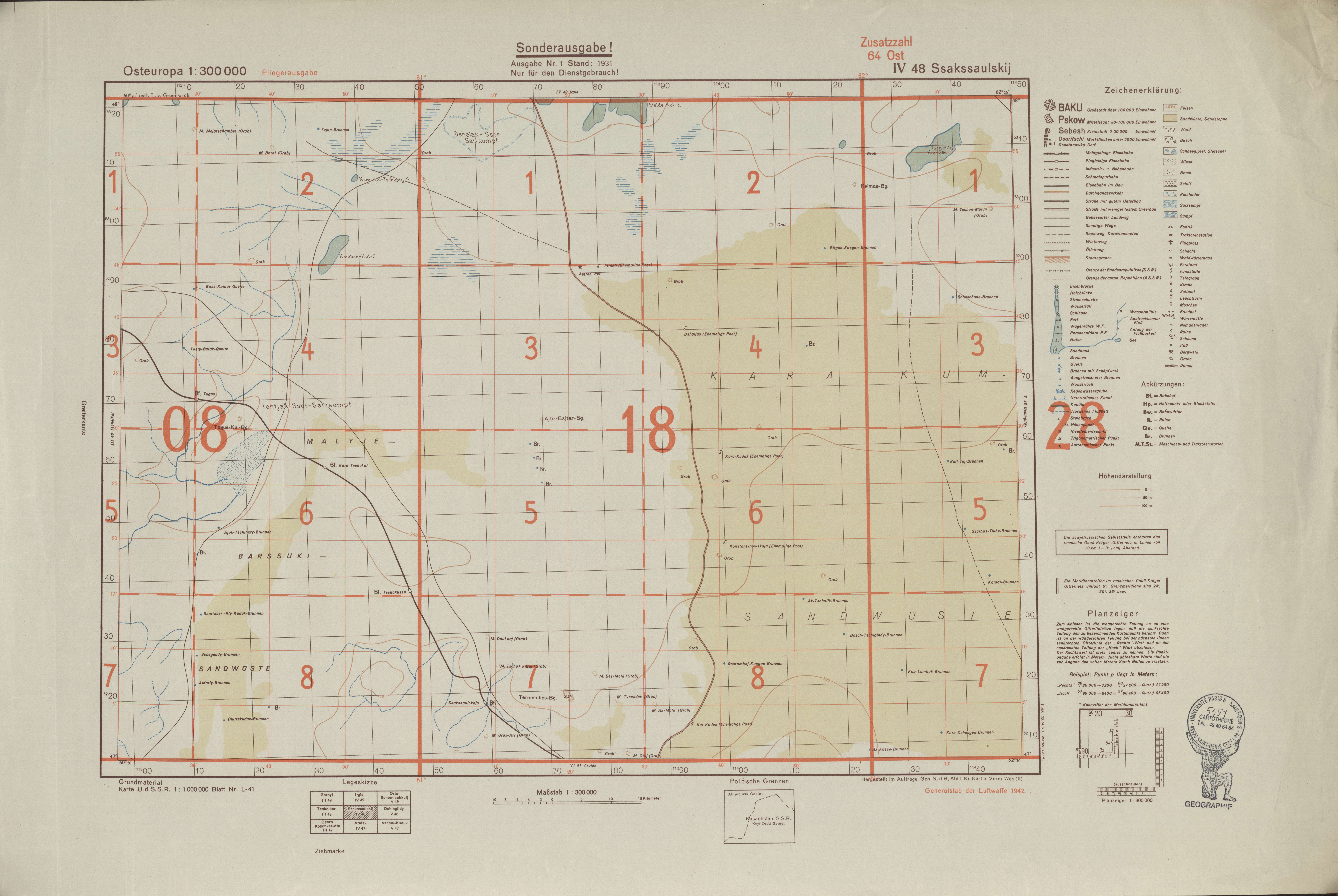 OsteuropaSsakssaulskijGen St d H Abt f Kr Kart und Verm Wes19421:300 000IV 48Kazakhstan