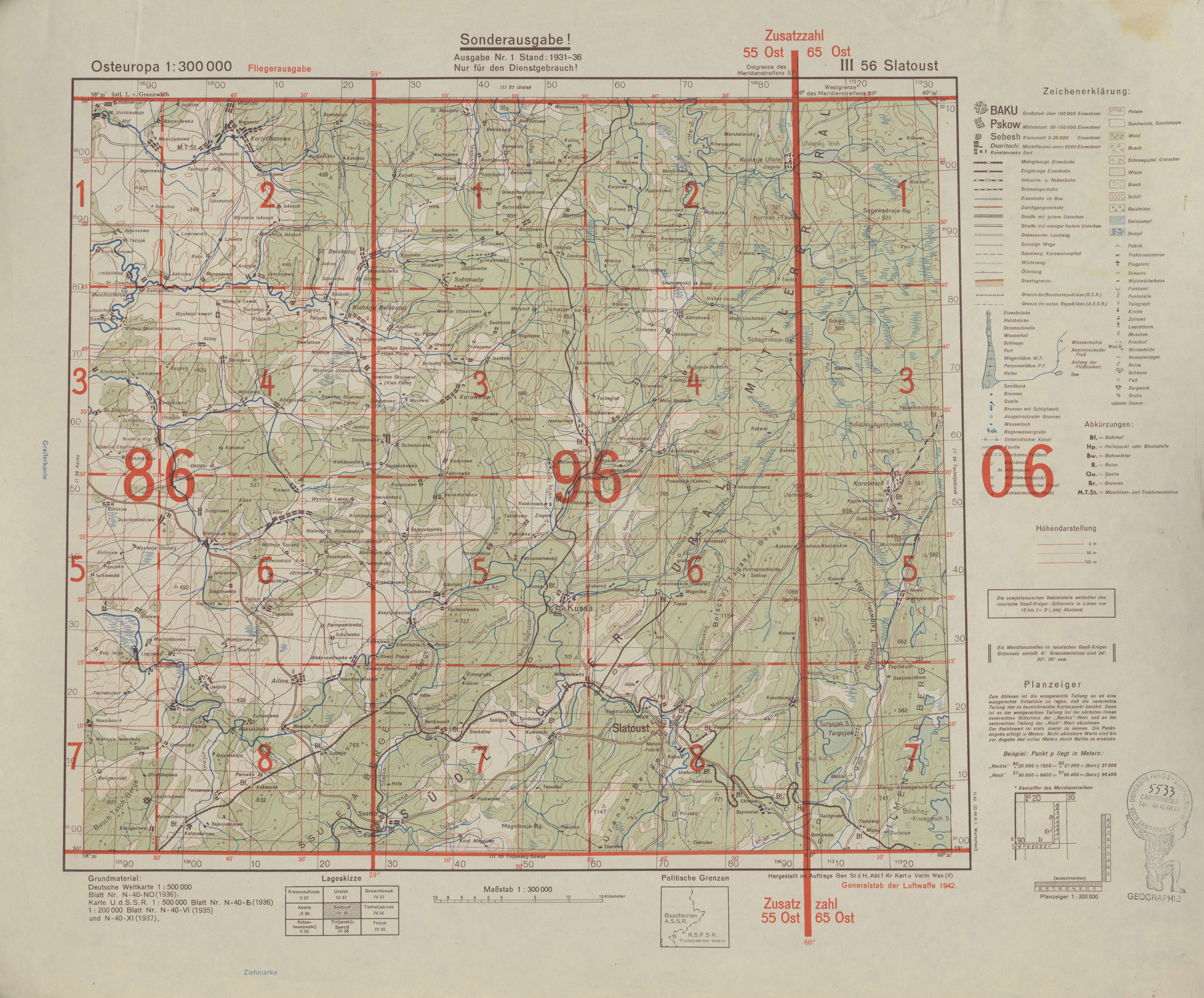 OsteuropaSlatoustGen St d H Abt f Kr Kart und Verm Wes19421:300 000III 56Russie
