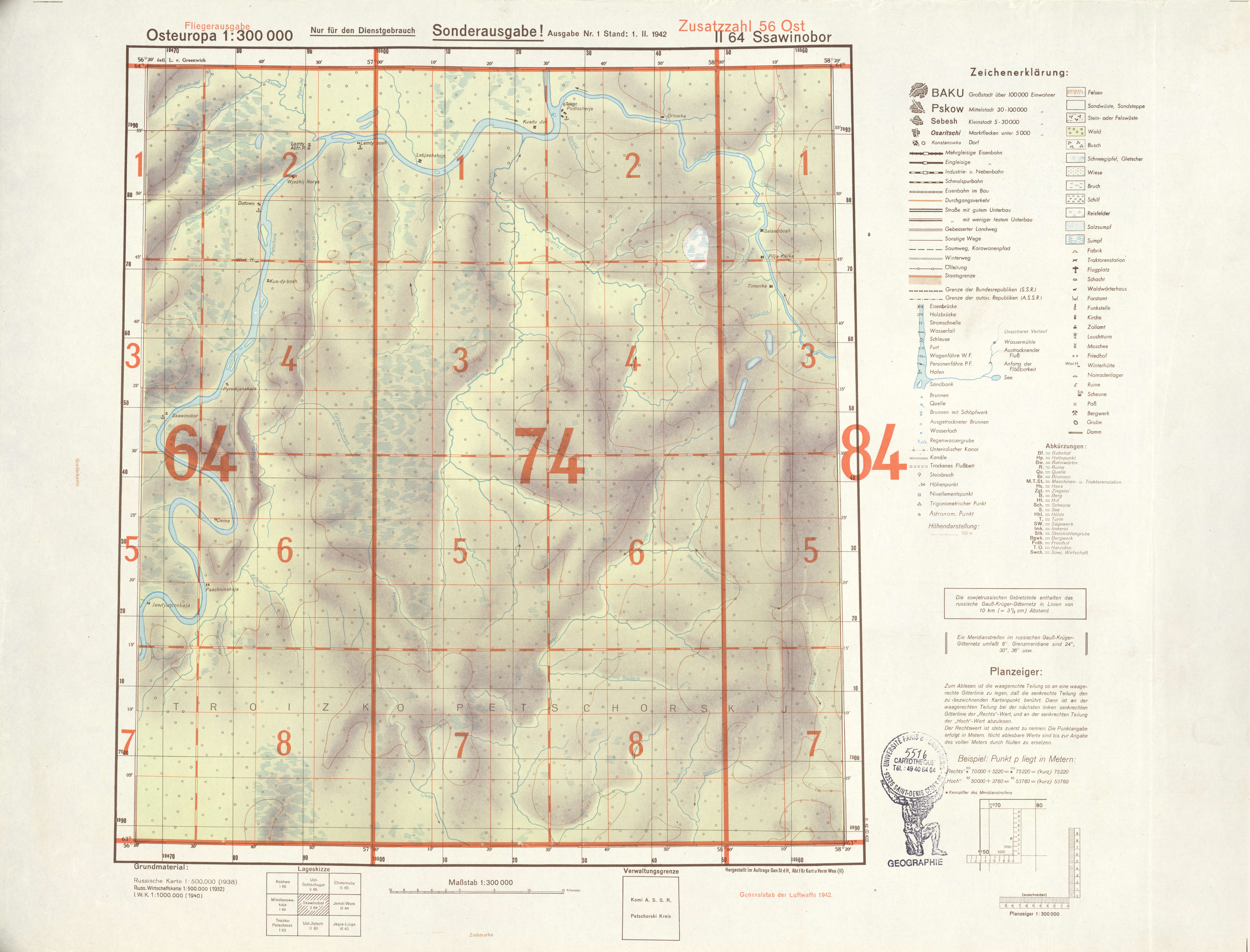 OsteuropaSsawinoborGen St d H Abt f Kr Kart und Verm Wes19421:300 000II 64Russie