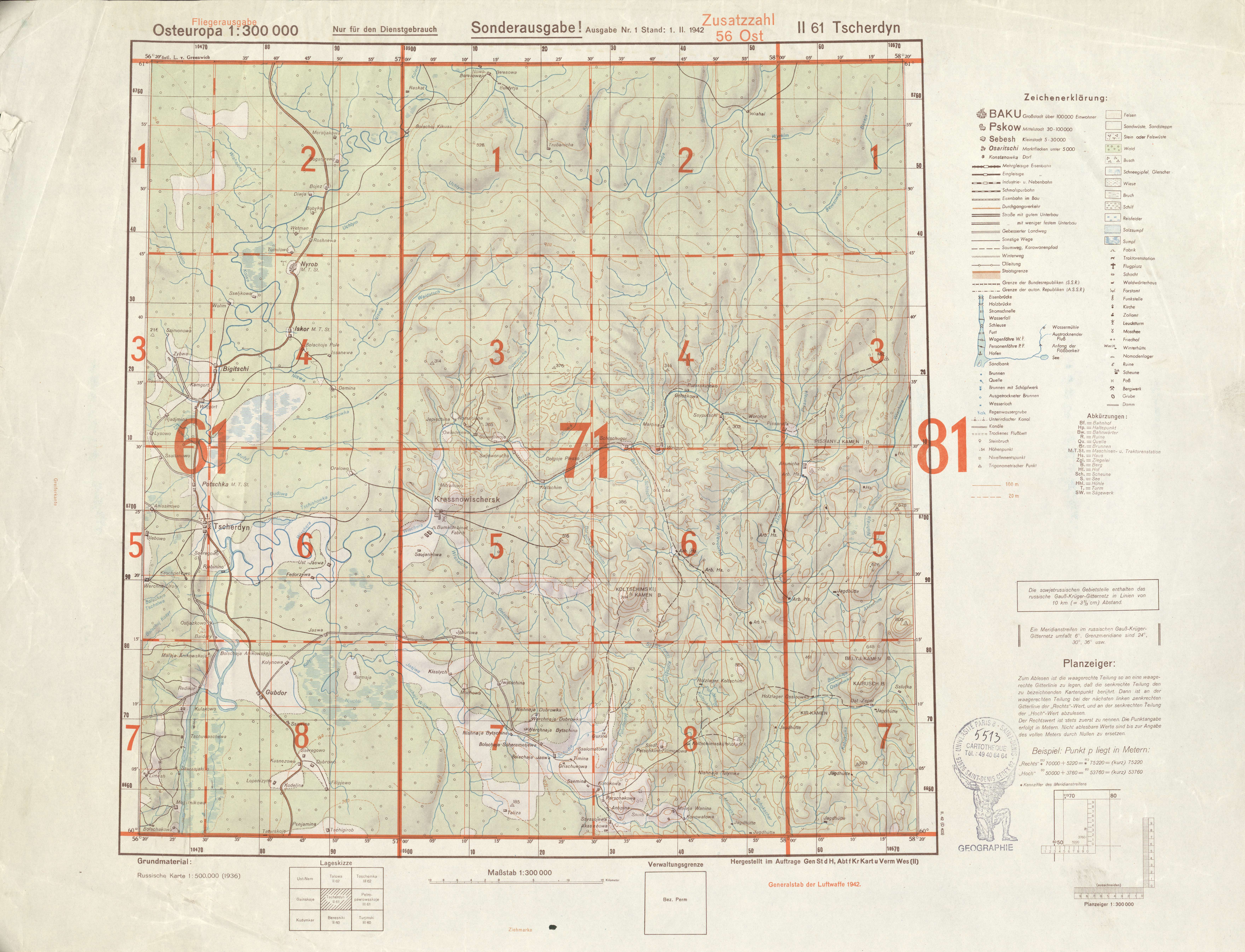 OsteuropaTscherdynGen St d H Abt f Kr Kart und Verm Wes19421:300 000II 61Russie