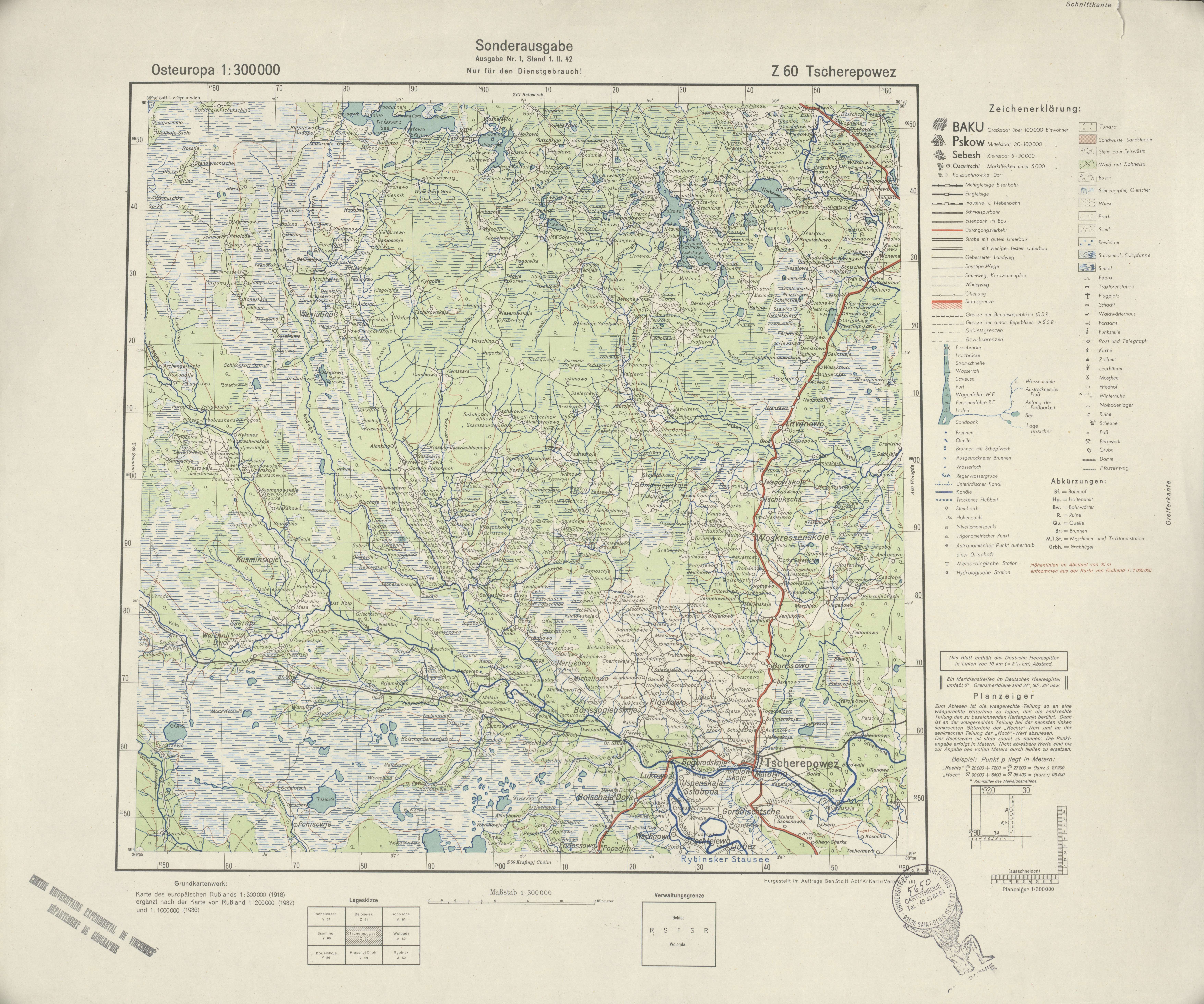OsteuropaTscherepowezGen St d H Abt f Kr Kart und Verm Wes19421:300 000Z 60Russie
