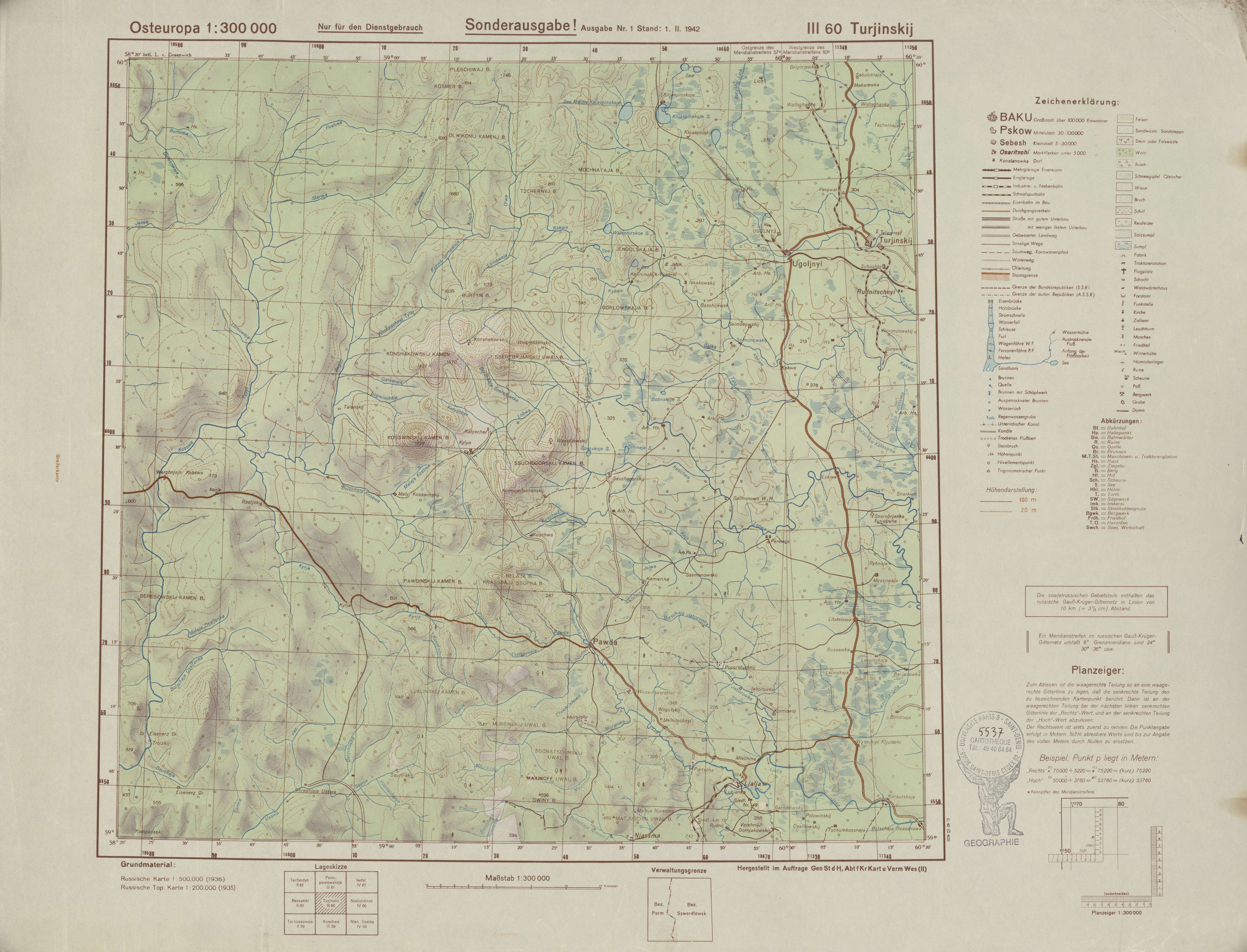 OsteuropaTurjinskijGen St d H Abt f Kr Kart und Verm Wes19421:300 000III 60Russie