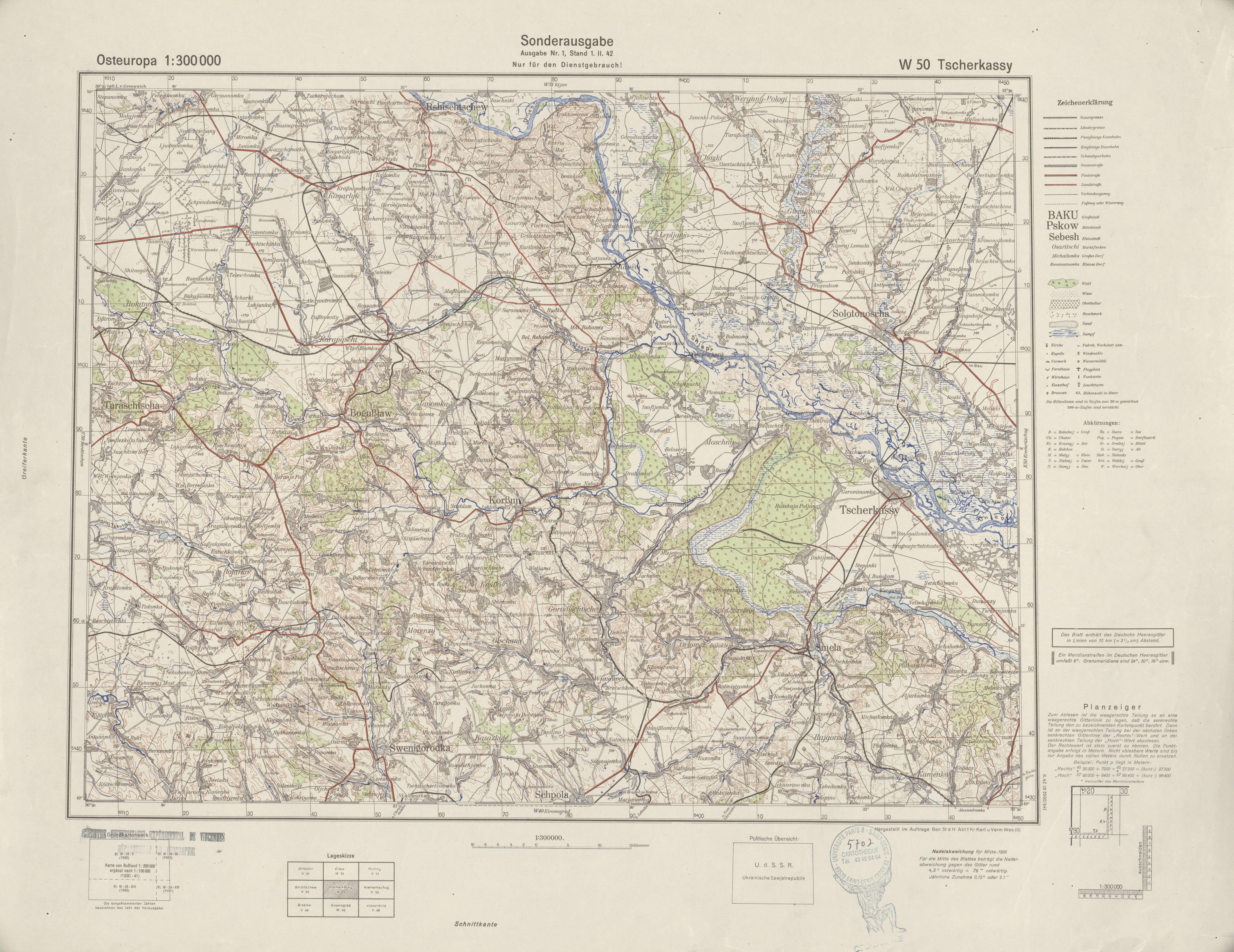 OsteuropaTscherkassyGen St d H Abt f Kr Kart und Verm Wes19421:300 000W 50Ukraine