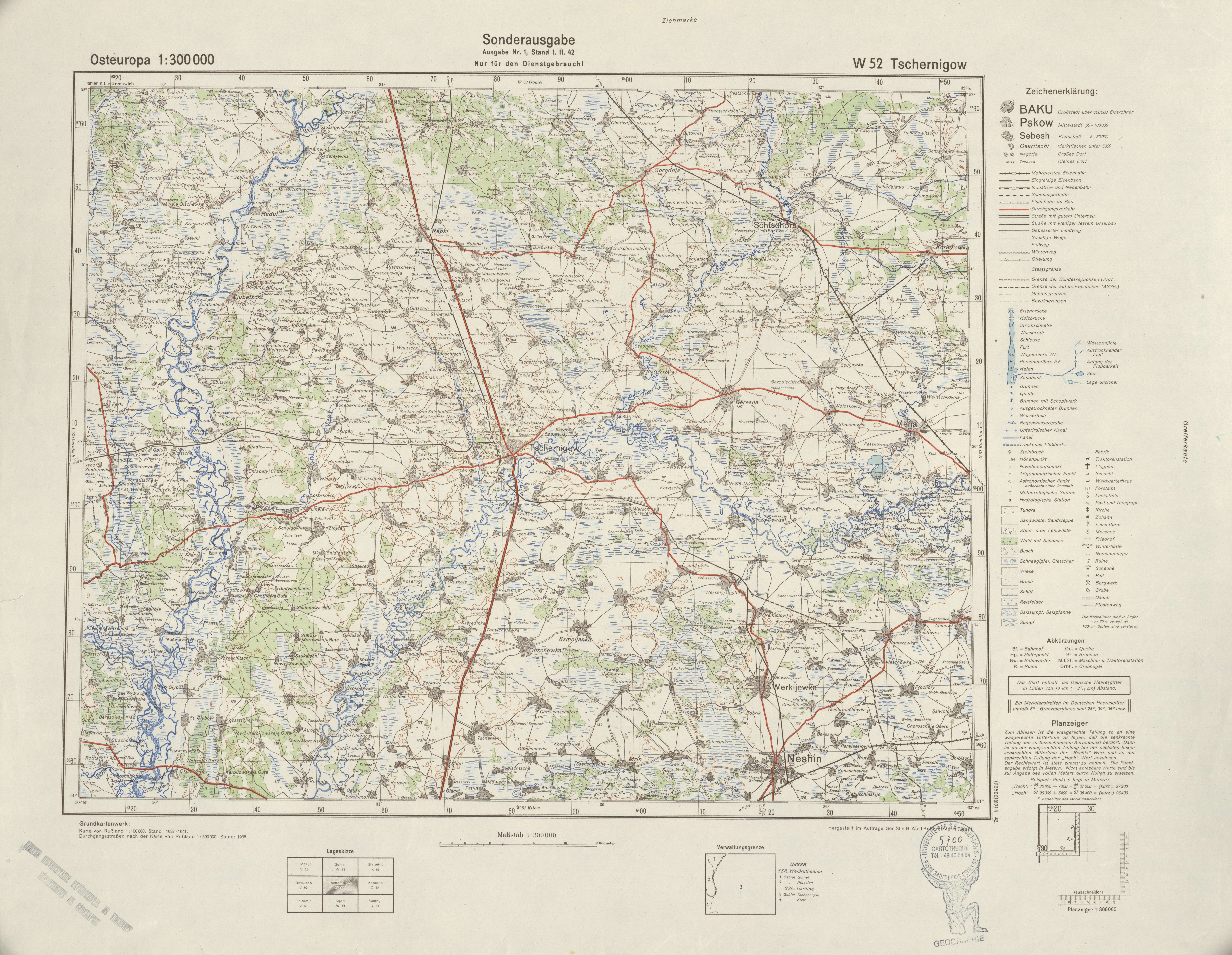 OsteuropaTschernigowGen St d H Abt f Kr Kart und Verm Wes19421:300 000W 52Ukraine