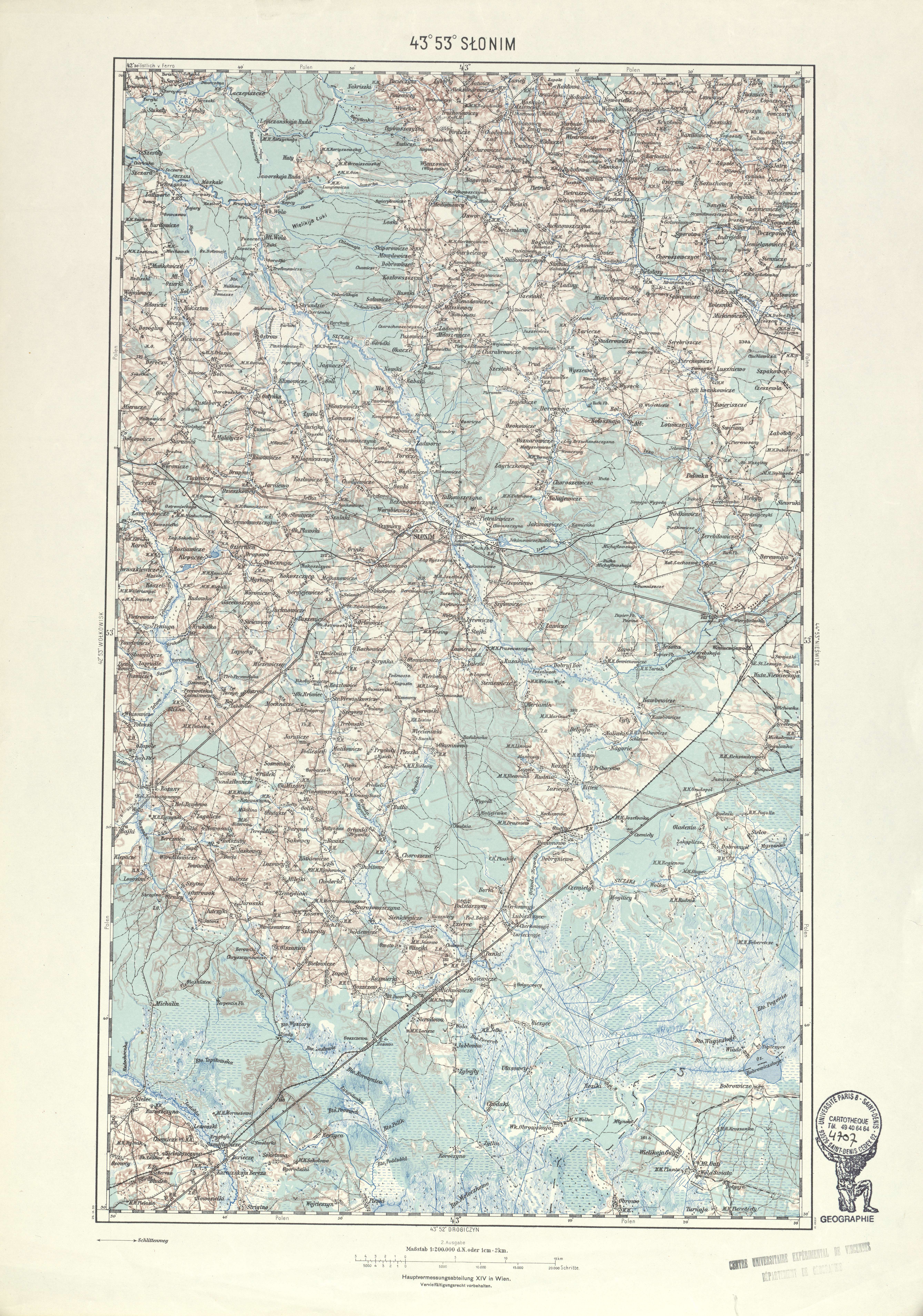 Generalkarte von MitteleuropaSlonimHauptvermessungsabteilung XIV19391:200 00043 53Biélorussie