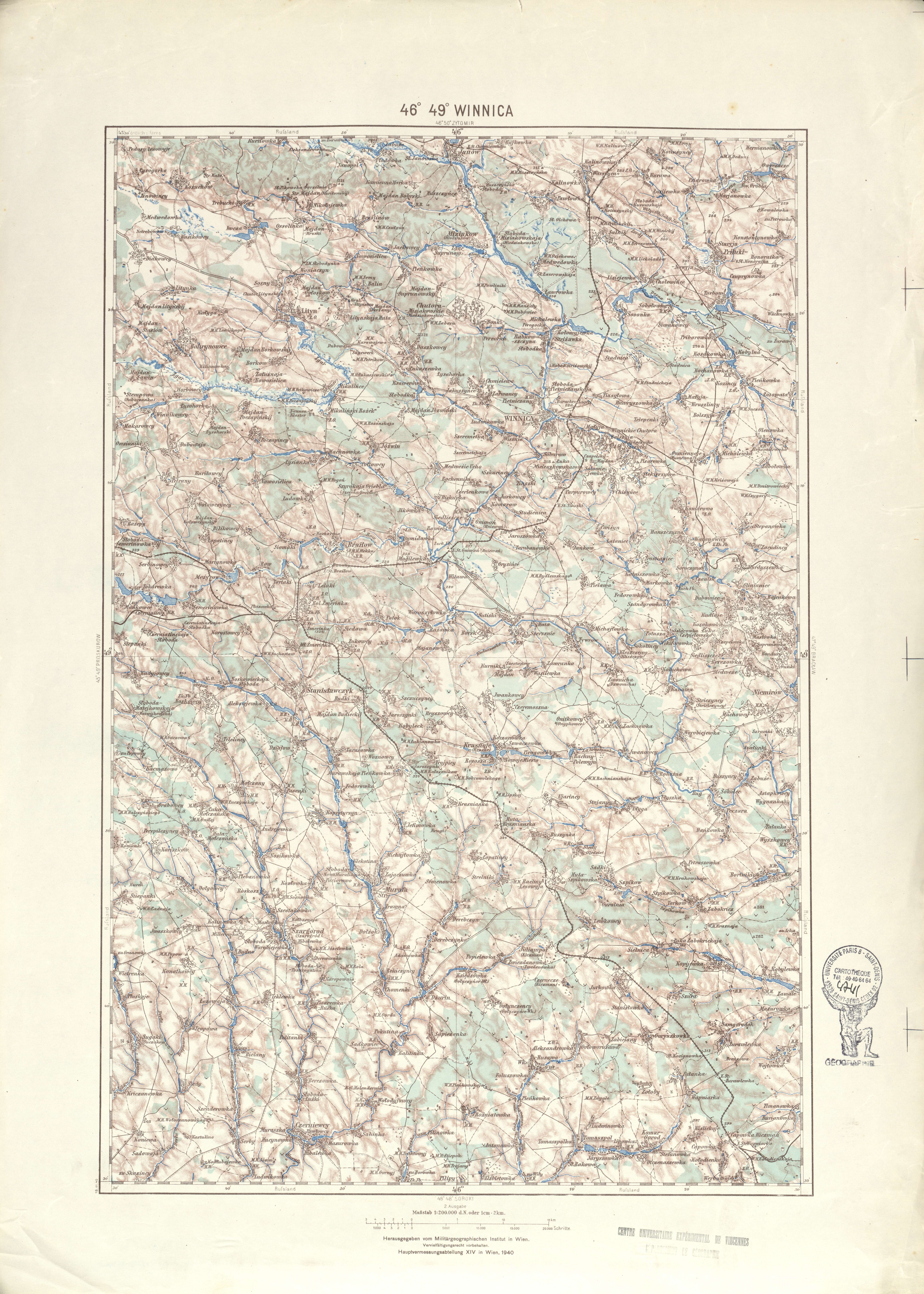 Generalkarte von MitteleuropaWinnicaMilitärgeographischen Institut. Hauptvermessungsabteilung XIV19401:200 00046 49Ukraine