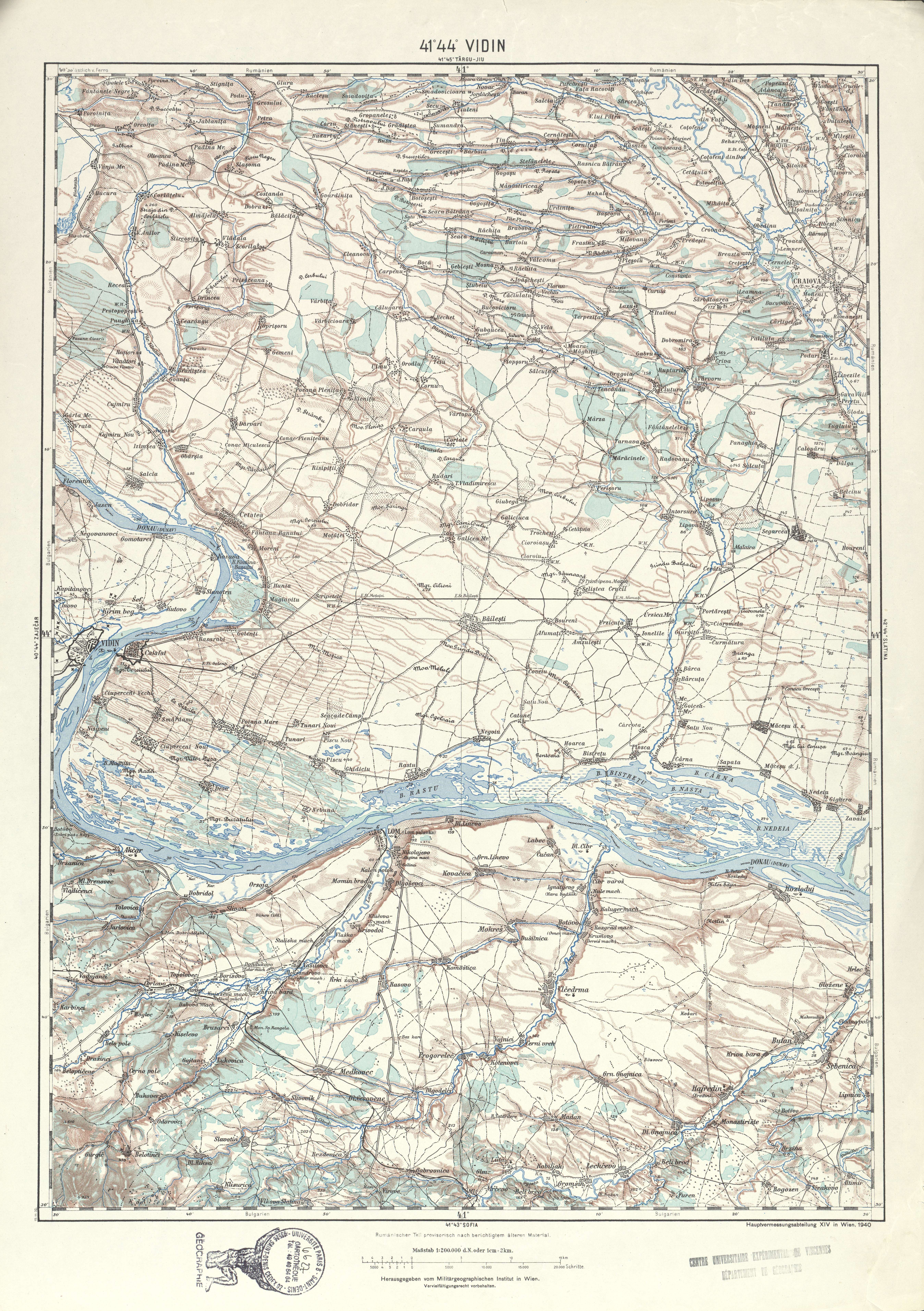 Generalkarte von MitteleuropaVidinMilitärgeographischen Institut. Hauptvermessungsabteilung XIV19401:200 00041 44Bulgarie