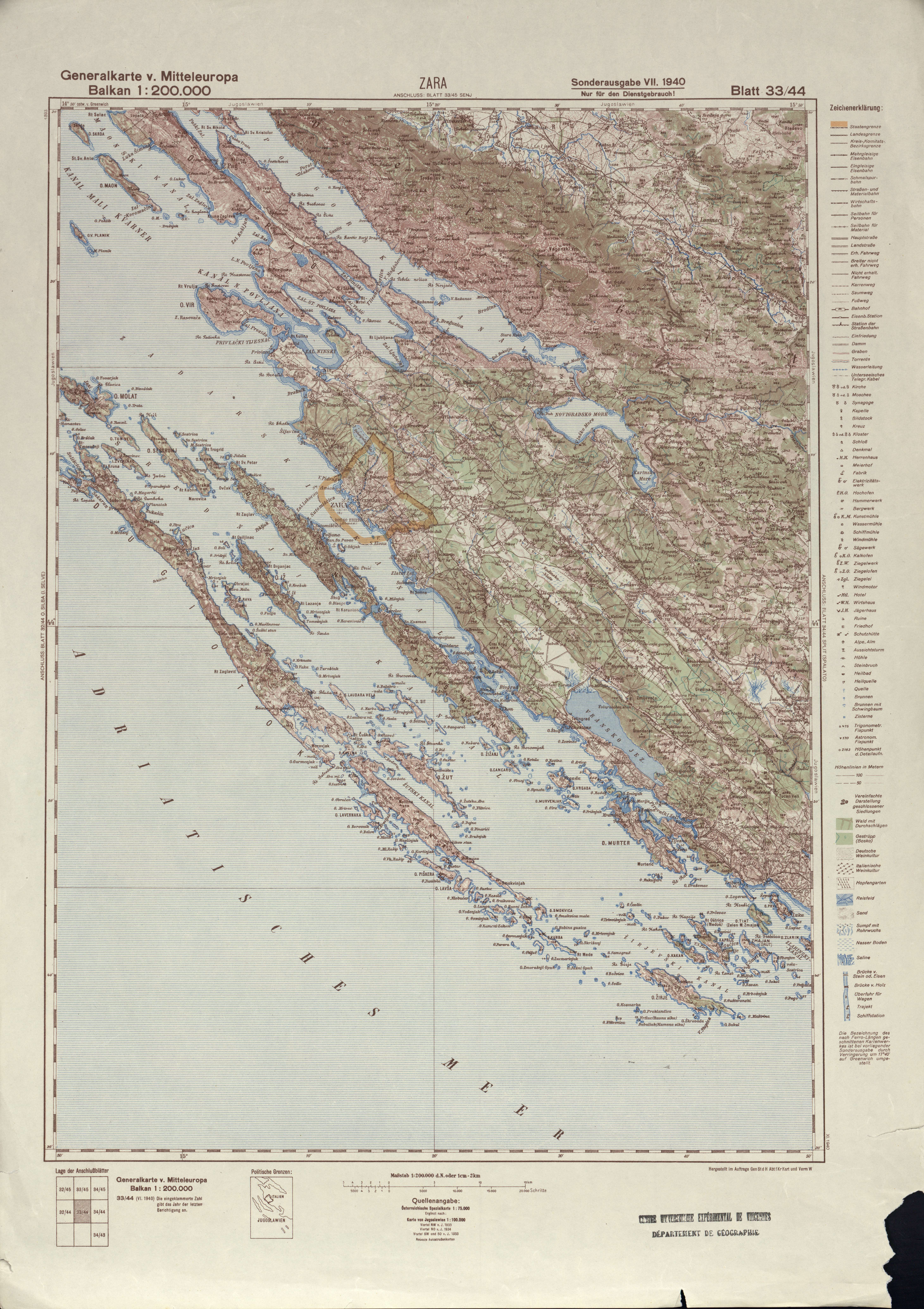 Generalkarte von MitteleuropaZaraGen St d H Abt f Kr Kart und Verm W19401:200 00033 44Croatie