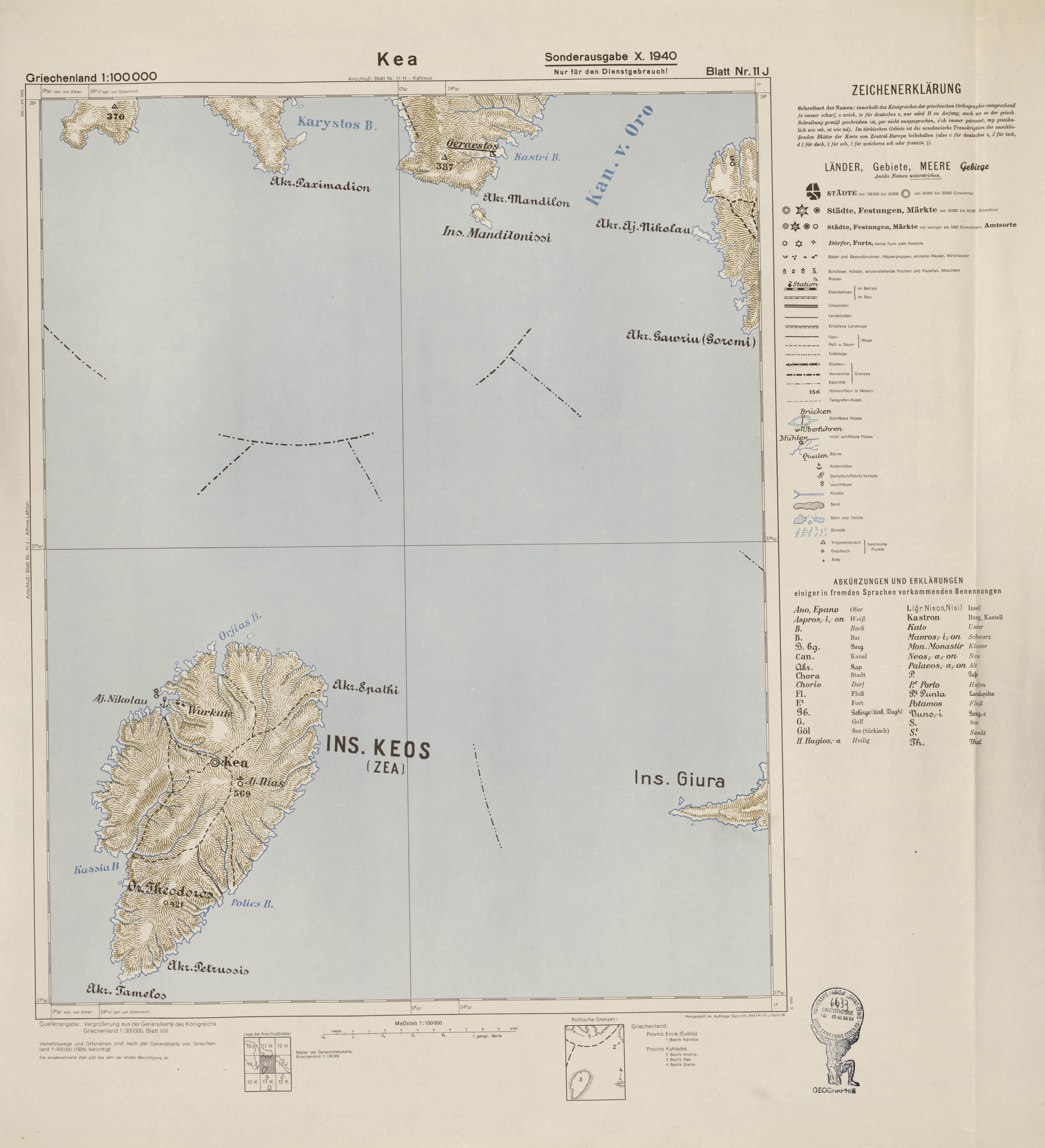 GriechenlandKeaOKH /Gen St dH.19401:100 000.Grèce