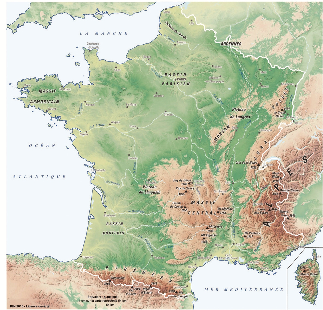 France physique.IGN20161:5 400 000.France