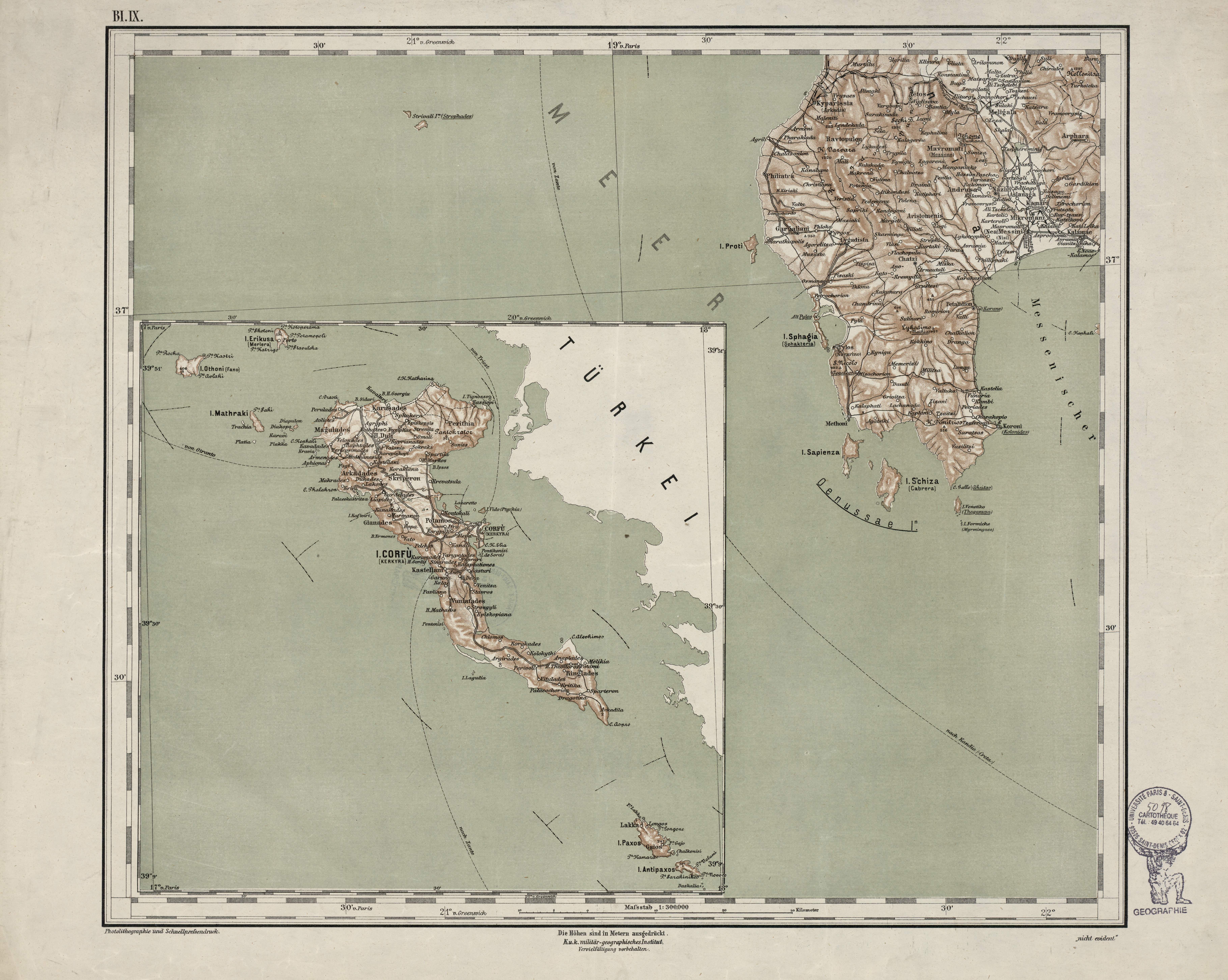 General-Karte des Königreiches Griechenland im Masse 1:300 000 der Natur[Corfù = Kerkyra = Corfou ; île]K.K. Militär-Geographischen Institut[1885]1:300 000B1.IXGrèce