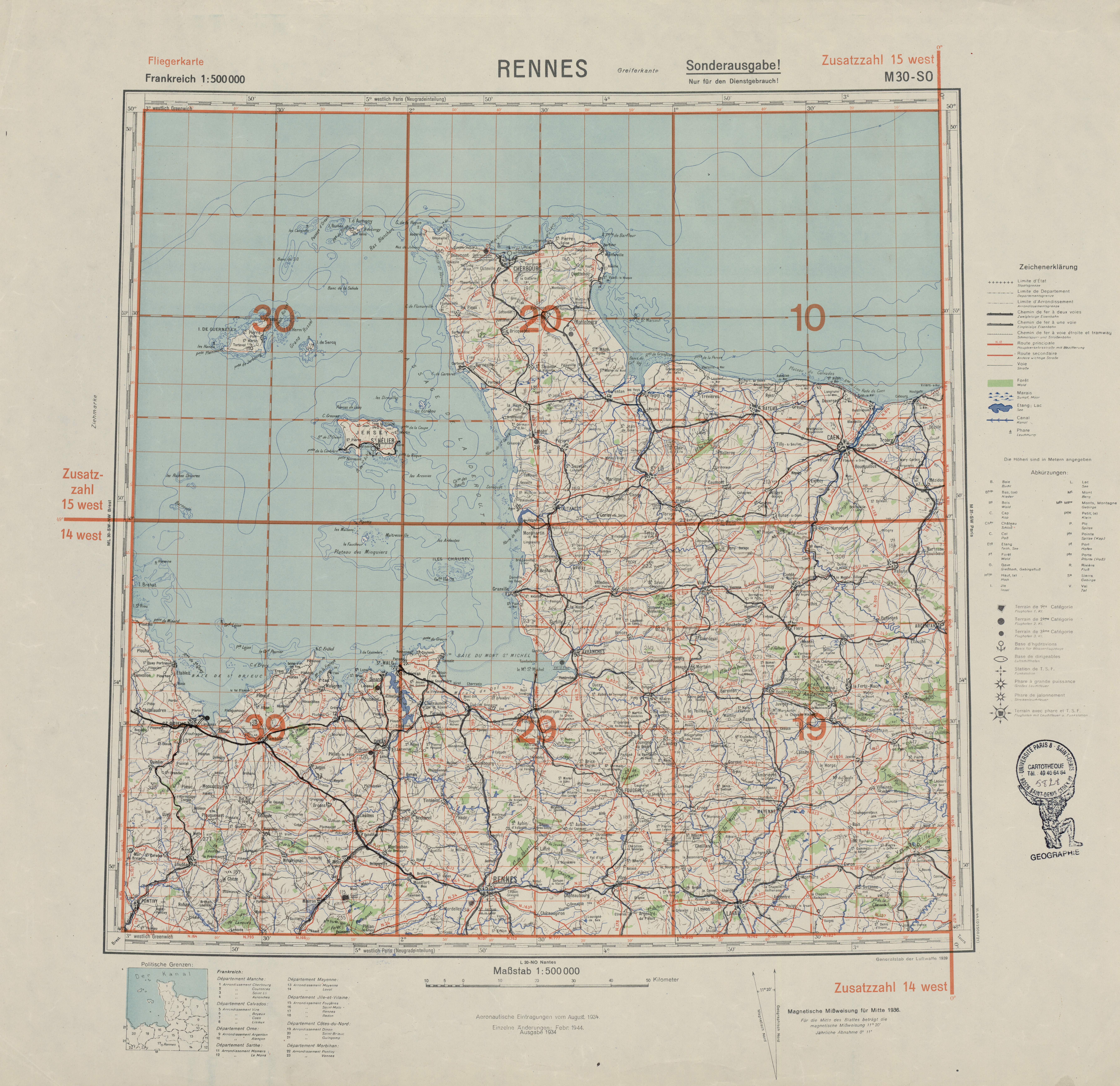 FrankreichRennesGeneralstab der Luftwaffe19441:500 000M 30-SOFrance