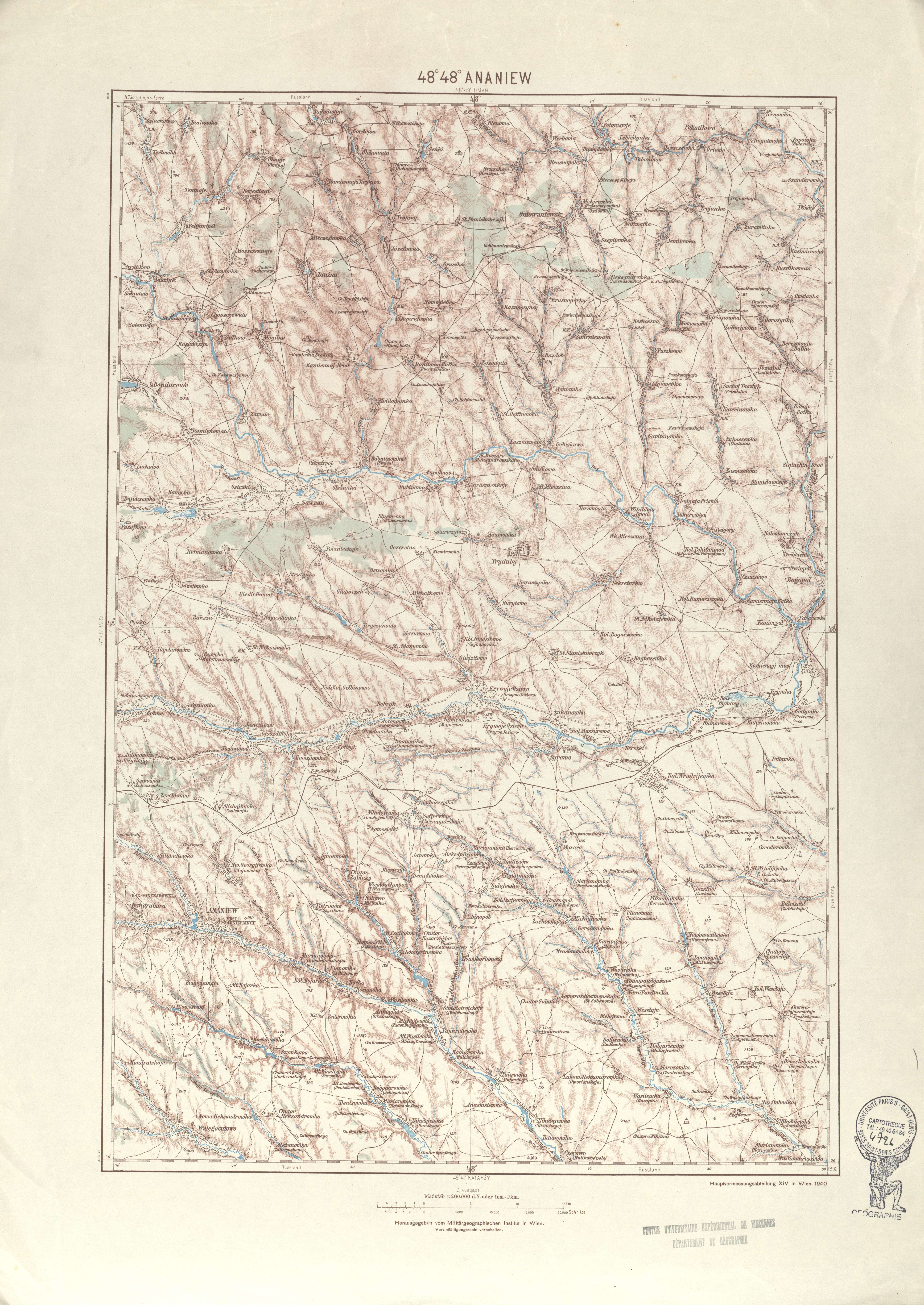 Generalkarte von MitteleuropaAnaniewMilitärgeographischen Institut. Hauptvermessungsabteilung XIV19401:200 00048 48Ukraine