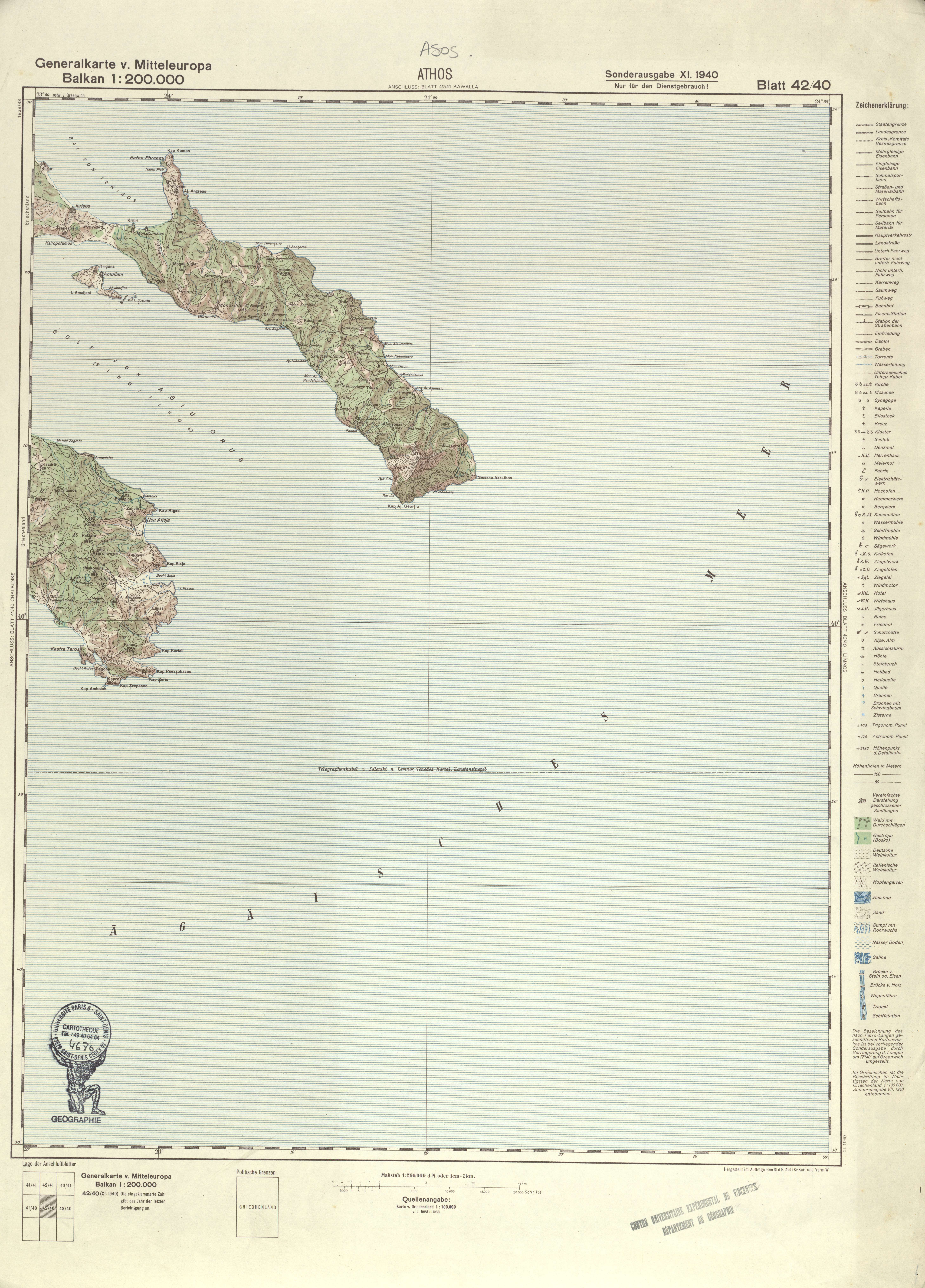 Generalkarte von MitteleuropaAthosGen St d H Abt f Kr Kart und Verm W19401:200 00042 40Grèce