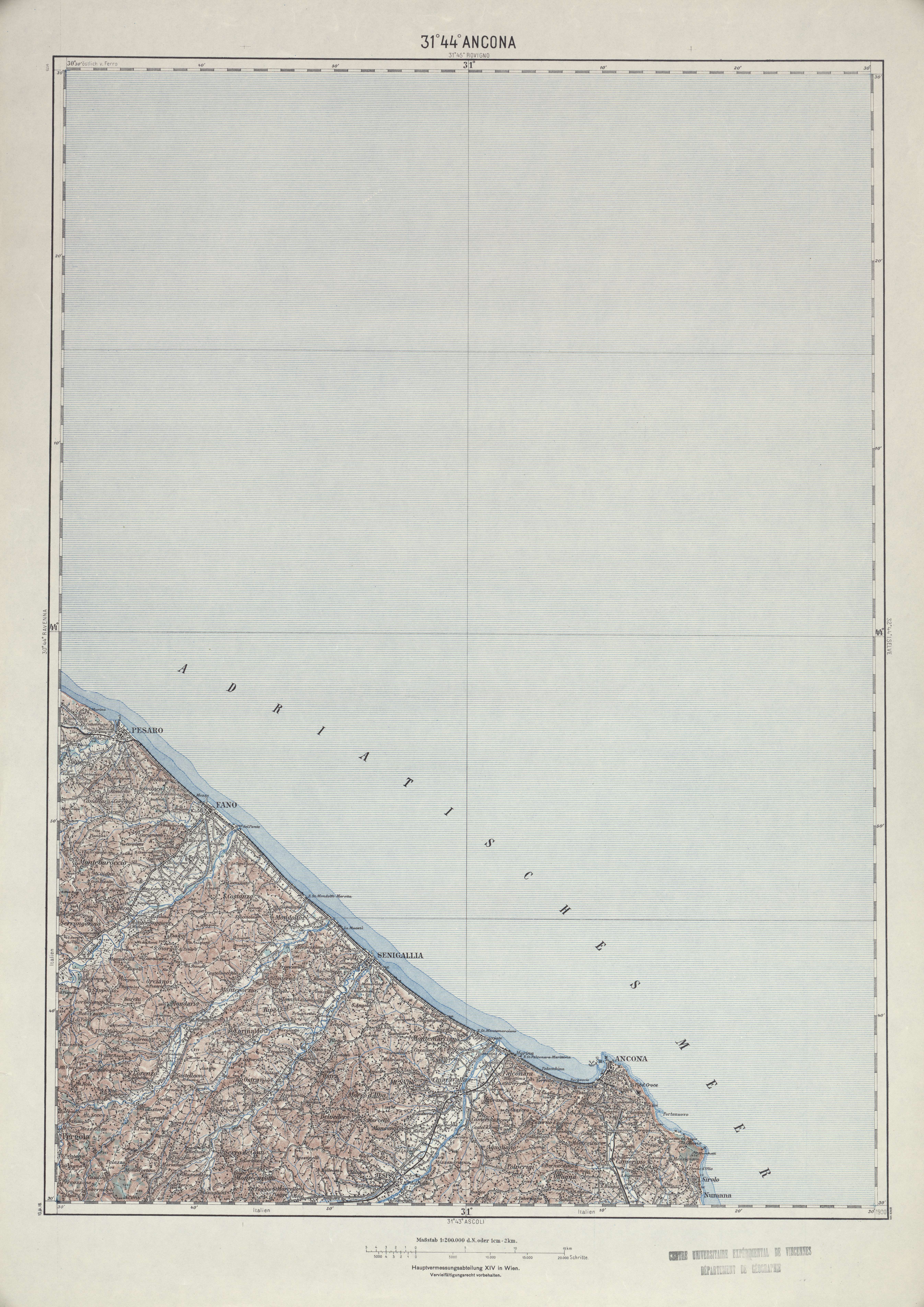 Generalkarte von MitteleuropaAnconaHauptvermessungsabteilung XIV19391:200 00031 44Italie