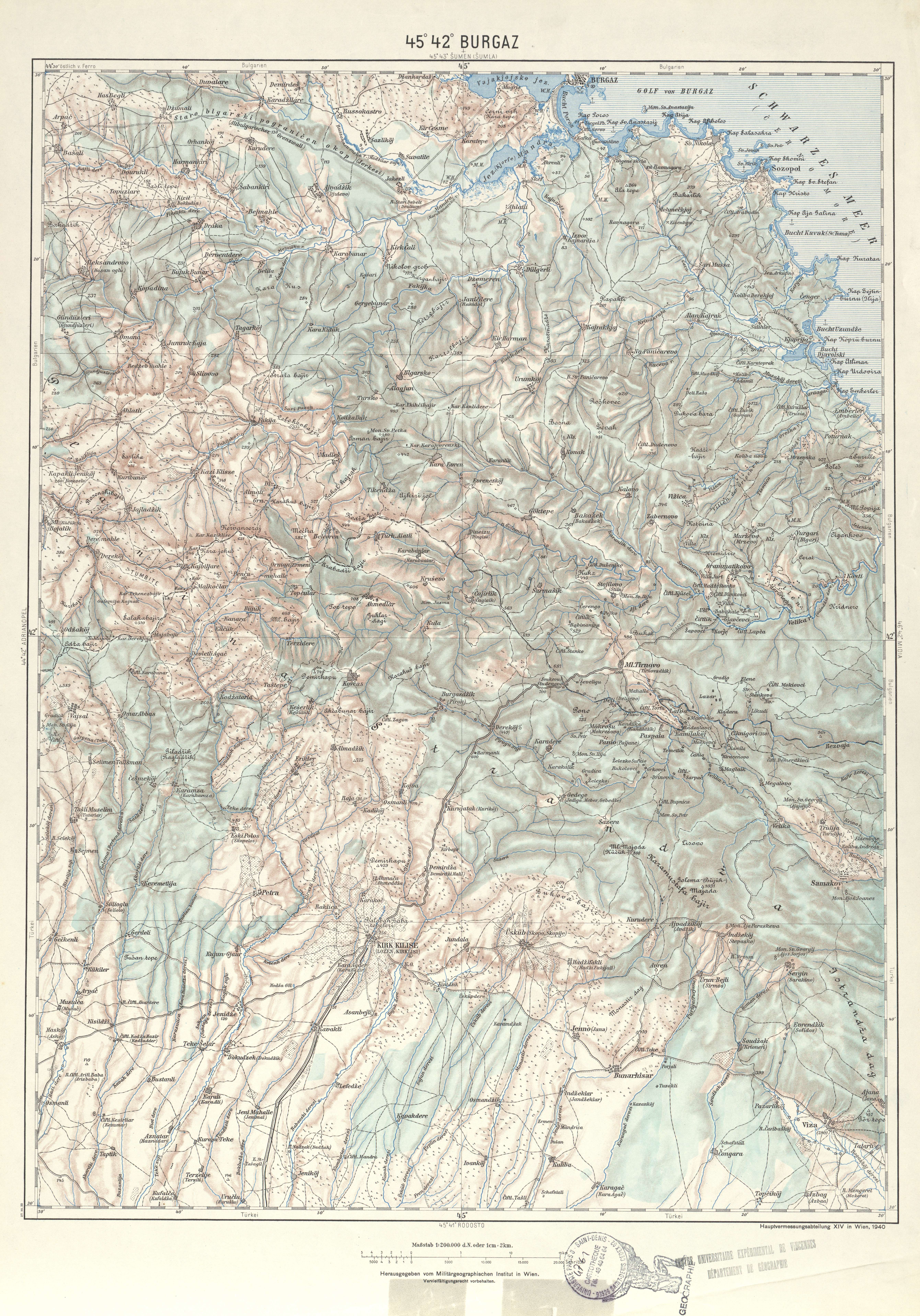 Generalkarte von MitteleuropaBurgazMilitärgeographischen Institut. Hauptvermessungsabteilung XIV19401:200 00045 42Bulgarie