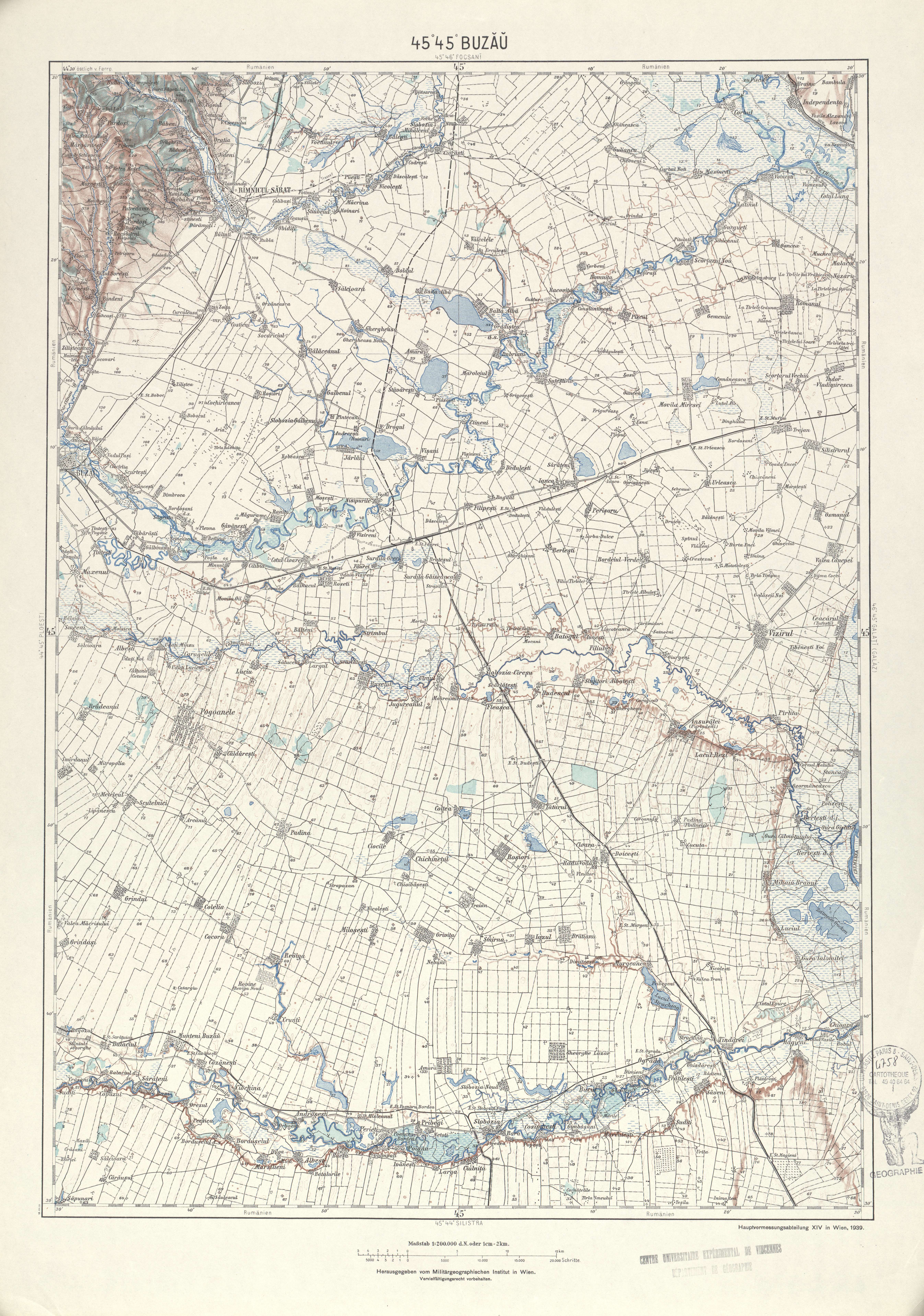 Generalkarte von MitteleuropaBuzauMilitärgeographischen Institut. Hauptvermessungsabteilung XIV19391:200 00045 45Roumanie