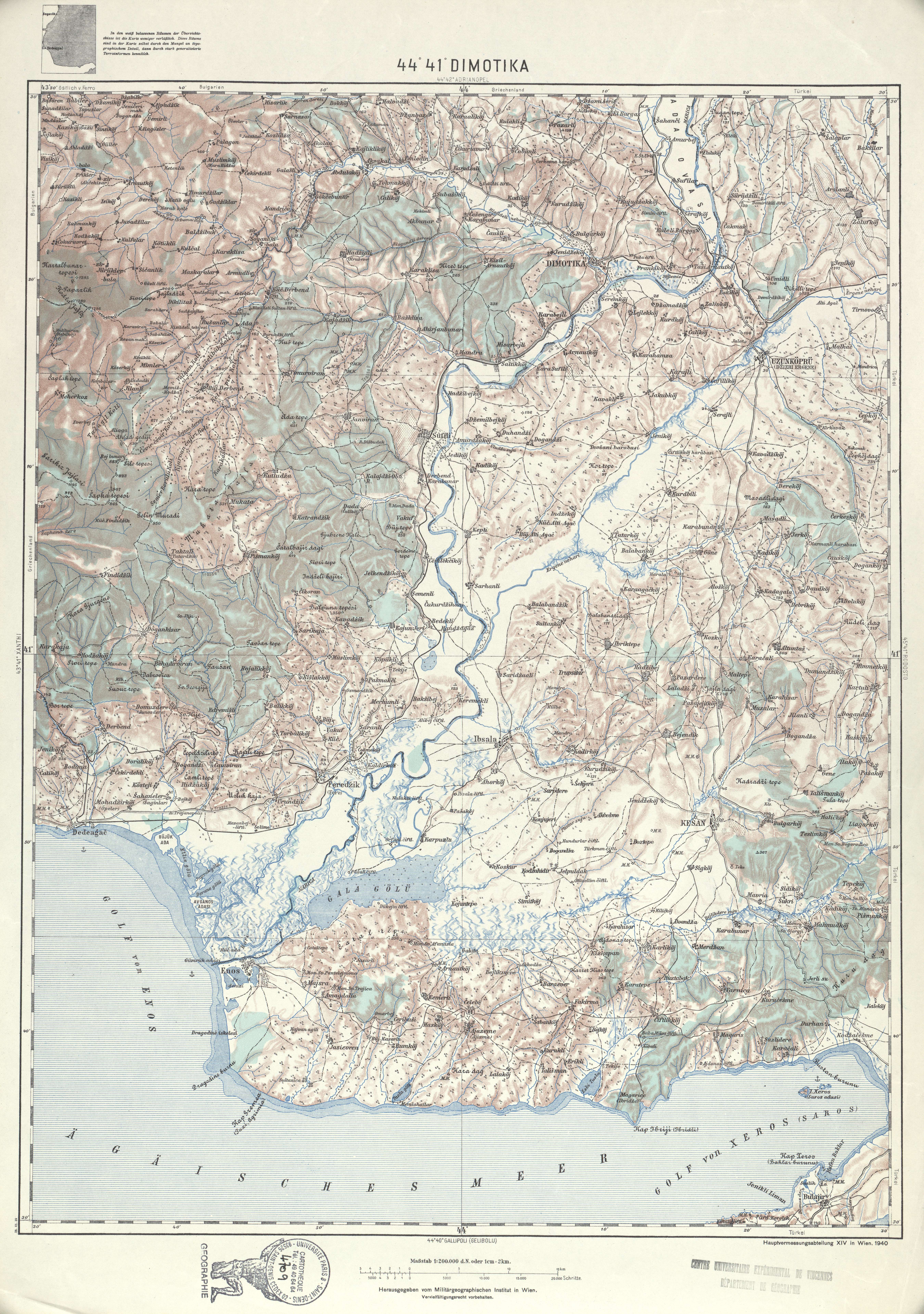 Generalkarte von MitteleuropaDimotikaMilitärgeographischen Institut. Hauptvermessungsabteilung XIV19401:200 00044 41Grèce