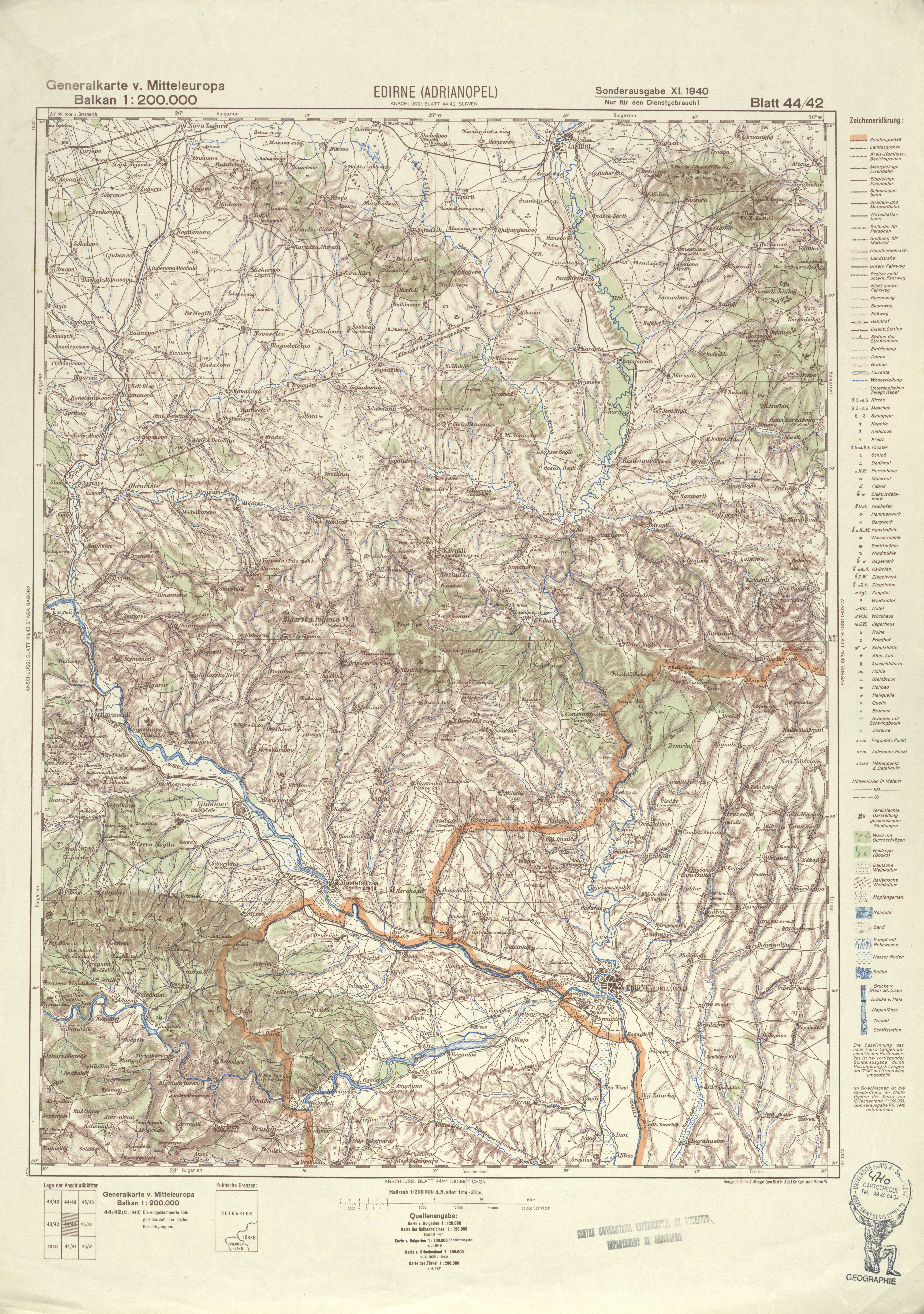 Generalkarte von MitteleuropaEdirne (Adrianopel)Gen St d H Abt f Kr Kart und Verm W19401:200 00044 42Turquie