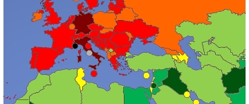 Carte des âges médians par pays, en 2015