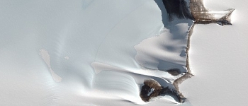 L'Antarctique vu par le satellite Pléiades en 2020. L'Antarctique est principalement recouvert de glace appelée inlandsis. Faune et flore sont quasiment absentes.